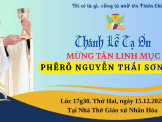 Thánh lễ tạ ơn, mừng Tân linh mục Phêrô NGUYỄN THÁI SƠN, MSV. Lúc 17giờ30 ngày 15.12.2025. tại Giáo xứ Nhân Hoà. Được trực tiếp để […]