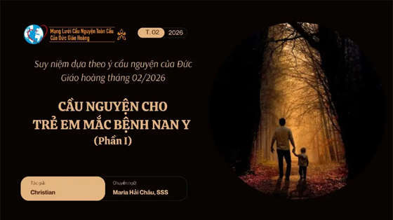 Sau đây là phần I bài suy niệm dựa theo ý cầu nguyện tháng 02/2026 của Đức Giáo hoàng: Cầu nguyện cho trẻ em mắc bệnh nan y.Trong tháng 02/2026, chúng ta cầu nguyện cho những trẻ em đang chịu đựng bệnh nan y và gia đình các em nhận được sự chăm sóc y tế và sự hỗ trợ cần thiết, không bao giờ đánh mất nghị lực và hy vọng.