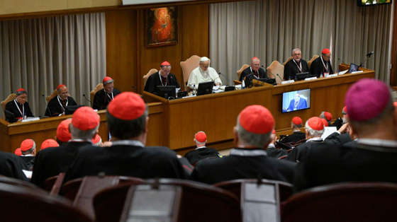 Khoảng 170 vị hồng y đến từ khắp nơi trên thế giới hiện diện tham dự buổi khai mạc và bước vào các phiên làm việc tại Hội trường Phaolô VI theo phương pháp hiệp hành, dựa trên đối thoại và lắng nghe, được chia thành các nhóm nhỏ.