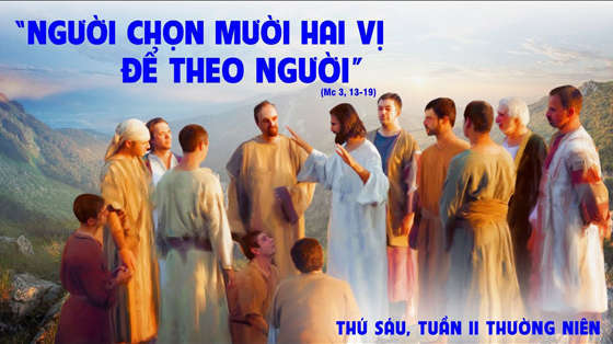 Khi ấy, Chúa Giêsu lên núi và gọi những kẻ Người muốn gọi, và họ đến cùng Người. Người chọn mười hai vị để theo Người, và sai các ông đi giảng và ban cho các ông quyền trừ quỷ. Mười hai vị ấy là: Simon mà Người đặt tên là Phêrô, Giacôbê con ông Giêbêđê, và Gioan là em Giacôbê, (cả hai được Người đặt tên là Boanerges, nghĩa là con của sấm sét), rồi đến Anrê, Philipphê, Bartôlômêô, Matthêu, Tôma, Giacôbê con ông Alphê, Tađêô, Simon nhiệt tâm, và Giuđa Iscariô là kẻ nộp Người.