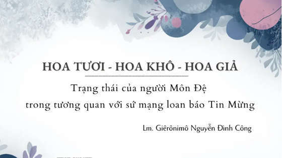 Bài viết này vay mượn những trạng thái của hoa để suy nghĩ về sự hiện diện của người môn đệ trong tương quan với sứ mạng loan báo Tin Mừng.HOA TƯƠI – HOA KHÔ – HOA GIẢ
