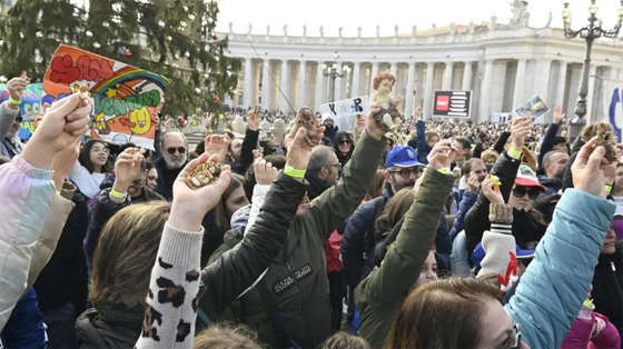 Đặc biệt, theo truyền thống, hôm nay các trẻ em và gia đình mang các tượng Chúa Hài Đồng đến xin Đức Thánh Cha làm phép, để đặt trong các hang đá tại gia đình, trường học và các nhà nguyện. Đức Thánh Cha nói: “Tôi cảm ơn Trung tâm Các Nhà Nguyện của Roma đã tổ chức sự kiện này và tôi làm phép tất cả các tượng Hài Nhi Giêsu. Các con thân mến, trước hang đá, các con hãy cầu nguyện với Chúa Giêsu cũng cho những ý nguyện của Đức Giáo Hoàng. Cách riêng, chúng ta cùng cầu nguyện để tất cả trẻ em trên thế giới được sống trong hòa bình. Cha chân thành cảm ơn các con!”
