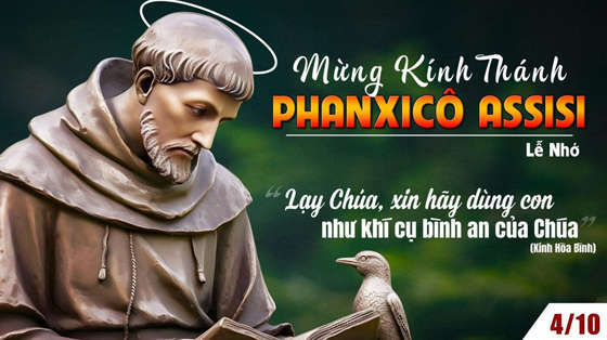 Ngày 04 tháng 10, Giáo hội mừng lễ nhớ Thánh Phanxicô Assisi. Sau thời tuổi trẻ phóng túng, ngài đã chọn sống theo Tin mừng, phục vụ Chúa Kitô, Đấng ngài đã nhận ra cách đặc biệt nơi những người nghèo khổ và bị bỏ rơi, đồng thời chính ngài cũng chọn sống nghèo khó. Thánh nhân quy tụ quanh mình những người bạn đồng hành, gọi là Anh em hèn mọn. Trên các nẻo đường, thậm chí đến tận Đất thánh, ngài rao giảng tình yêu Thiên Chúa cho mọi người, cố gắng hết sức qua lời nói và hành động của mình để bước theo Chúa Kitô hơn. Năm 1226, ngài muốn được từ giã cõi đời trên mặt đất trần trụi.