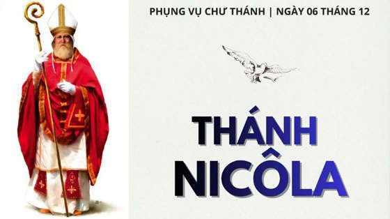 Thánh Nicôla được chọn làm Giám mục Myra và dưới thời Hoàng đế Điôclêtianô, ngài bị lưu đày và bỏ tù. Được trả tự do năm 325, ngài tham dự Công đồng Nicêa và qua đời tại Myra ngày 06 tháng 12 năm 343. Nhiều câu chuyện lưu truyền về cuộc đời ngài, tất cả đều minh chứng cho một đời sống phục vụ những người yếu thế, những người bé mọn và những ai không nơi nương tựa.