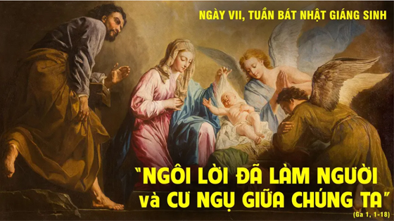 Và Ngôi Lời đã hóa thành nhục thể, và Người đã cư ngụ giữa chúng tôi, và chúng tôi đã nhìn thấy vinh quang của Người, vinh quang Người nhận được bởi Chúa Cha, như của người Con Một đầy ân sủng và chân lý.