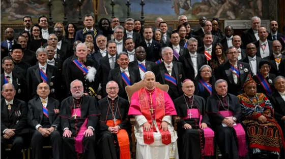 Năm vừa qua đã chứng kiến nhiều biến cố quan trọng, bắt đầu với những biến cố tác động trực tiếp đến đời sống Giáo hội, khi Giáo hội trải qua một Năm thánh sâu sắc, và cũng đã chứng kiến vị tiền nhiệm đáng kính của tôi, Đức Giáo hoàng Phanxicô, trở về Nhà Cha. Toàn thế giới đã quy tụ quanh linh cữu của ngài trong ngày lễ an táng, và cảm nhận sự mất mát một người cha đã dẫn dắt Dân Chúa với đức ái mục tử vô cùng lớn lao.