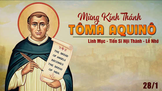 Thánh Tô-ma A-qui-nô sinh năm 1225 tại thành Naples Ý Ðại Lợi trong một gia đình phú quí và đạo hạnh. Ngài được hấp thụ một nền đạo đức sâu sắc, đặt căn bản trên đức tin và giáo lý chân chính của Chúa Giêsu và các tông đồ. Cha của Tô-ma là lãnh Chúa đảo Aquinô. Tuy danh vọng cao vời, nhưng gia đình cha mẹ của thánh nhân luôn biết kính sợ Chúa và giáo dục con cái theo luật Chúa và Giáo Hội. Nhờ thế, thánh Tôma Aquinô đã sớm tiến tới trong đàng nhân đức, có một đức tin sắt đá và một nền học vấn uyên thâm để có thể hiểu và giải đáp được những vấn nạn trong xã hội cũng như những giải đáp cho thời đại đang tiến bộ.Trong quá trình theo học, Tôma được gửi học ở tu viện Cassino do các Cha Bênêđitô điều khiển. Một biến cố chính trị đưa đến việc giải tán tu viện sau 9 năm thánh hân đã theo học với các cha Bênêđitô. Sau đó, thánh nhân lại tiếp tục học ở Naples, nơi đây thánh nhân có dịp tiếp xúc với các cha dòng Ðaminh, Tôma say mê với lý tưởng sống cho người nghèo và làm việc trí thức để truyền bá cho những người khác chân lý, lý tưởng mà Ngài đã ghiền gẫm, đã suy nghĩ. Lý tưởng của thánh Ðaminh đã đánh động Ngài tới tận căn, nên Ngài đã quyết định xin vào dòng thánh Ðaminh vào năm 1244. Việc này làm phật ý thân mẫu thánh Tôma vì bà luôn muốn Tôma làm tu viện trưởng Cassino. Thân mẫu của Tôma quyết định bắt Tôma về giam trong gia đình và dùng mọi mưu kế để cho Tôma trở về thế gian. Mọi mưu chước của mẹ đều bị thất bại. Sau cùng trong cơn mù quáng tột độ, bà đã dùng một cô gái trắc nết để quyến rũ thánh nhân, vì bà hy vọng Tôma sẽ bị ngã gục. Nhưng ý Chúa nhiệm mầu, Tôma đã chiến thắng, đuổi cô gái hư ra khỏi nơi Ngài ở. Chúa đã yêu thương Ngài, sai thiên thần đến cột giây trinh khiết cho Ngài để biểu tỏ sự chiến thắng của Ngài, đúng như lời sách đệ nhị luật đã viết:” Chúa ấp ủ và lo dưỡng dục Tôma , luôn gìn giữ chẳng khác nào con ngươi mắt Chúa”(� Ðnl 32, 10 ). Với ý chí sắt đá, lòng tin tưởng tuyệt đối vào Chúa, thân mẫu Ngài đành để Ngài trốn về lại tu viện. Thánh Tôma lúc đó được thụ huấn với thánh Albertô, một học giả uyên bác, nổi tiếng thời đó. Năm 27 tuổi, thánh Tôma đã trở thành giảng sư đại học với một kiến thức uyên bác có thể hướng dẫn� được giới trí thức đang say mê triết học Hy Lạp ngoại giáo. Ngài đã viết bộ” Tổng luận thần học” đầy giá trị, để lại cho Giáo Hội và hậu thế. Ngài nói Ngài đã múc tất cả sự khôn ngoan nơi Chúa Giêsu qua suy niệm và cầu nguyện để viết nên:” Tổng luận thầnhọc” này.CHÚA VÀ GIÁO HỘI THƯỞNG CÔNG NGÀI