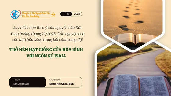 Tháng 12/2025 – Cùng với Giáo hội bước vào mùa Vọng và hiệp ý với Đức Giáo hoàng cầu nguyện cho các Kitô hữu đang sống giữa chiến tranh và xung đột, chúng ta được mời gọi trở nên những hạt giống của hòa bình và hy vọng. Lời ngôn sứ Isaia mở ra một hành trình nội tâm giúp ta nhận ra và đón lấy điều Chúa đang thực hiện trong đời mình và nơi thế giới.
