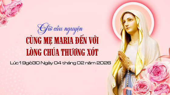 Giờ cầu nguyện “Cùng Mẹ Maria đến với Lòng Thương Xót Chúa” được phát vào ngày 04.02.2026. Để phục vụ cho những bệnh nhân trên giường bệnh, các cụ lớn tuổi, khuyết tật, đau yếu. Kính mời quý anh chị cùng hiệp thông cầu nguyện trên các Website, Face book: