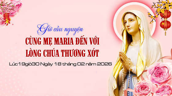 Giờ cầu nguyện “Cùng Mẹ Maria đến với Lòng Thương Xót Chúa” được phát vào ngày 18.02.2026. Để phục vụ cho những bệnh nhân trên giường bệnh, các cụ lớn tuổi, khuyết tật, đau yếu. Kính mời quý anh chị cùng hiệp thông cầu nguyện trên các Website, Face book:
