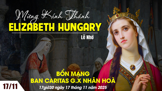 Thánh lễ Thánh Elizabeth Hungary “BỔN MẠNG BAN CARITAS G.X NHÂN HOÀ”. Lúc 17giờ30 ngày 17.11.2025. tại Giáo xứ Nhân Hoà. Được trực tiếp để phục vụ: Bệnh nhân, những người đau yếu, tản tật không thể đến nhà thờ được! Kính mời quý anh chị cùng hiệp thông cầu nguyện.