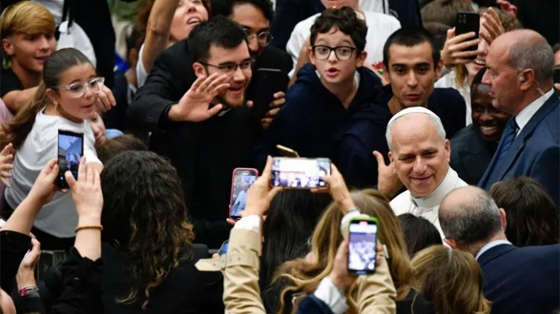 Thật là một niềm vui lớn lao khi được gặp các con! Cha đã mong chờ khoảnh khắc này với sự háo hức rất lớn. Được ở bên các con gợi lại cho cha những năm tháng cha còn dạy môn toán cho các bạn trẻ đầy sức sống như các con. Cảm ơn các con đã nhận lời mời đến đây hôm nay và chia sẻ những suy tư và niềm hy vọng của mình, những điều cha sẽ chuyển đến các bạn bè của chúng ta trên khắp thế giới.