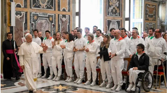 Các vận động viên thân mến, tôi cảm ơn tất cả các bạn vì sự dấn thân của mình. Tôi cầu xin Đức Giêsu Kitô, “vận động viên đích thực của Thiên Chúa” (x. Thánh Gioan Phaolô II, Bài giảng cho Năm Thánh các Vận động viên, ngày 29 tháng 10 năm 2000, số 4), khơi dậy trong mỗi người các bạn những thách đố nhân đức hơn nữa và ban cho các bạn sức mạnh để sống những thách đố ấy với lòng nhiệt thành. Khi đồng hành với các bạn bằng phép lành, tôi trao cho các bạn một sứ mạng: hãy tiếp tục bảo đảm rằng con người luôn ở vị trí trung tâm của thể thao dưới mọi hình thức (x. Thư Sự sống dồi dào).