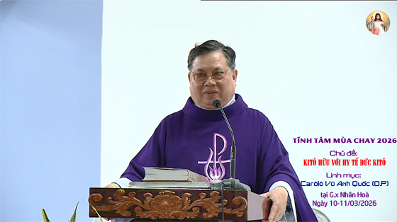 Tĩnh tâm Mùa Chay 2026 KITÔ HỮU VỚI HY TẾ ĐỨC KITÔ. Lúc 17giờ30 ngày 11.03.2026. Linh mục Carôlô Vũ Anh Quốc (O.P)