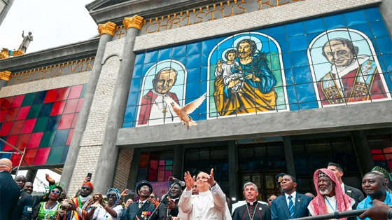 Kết thúc cuộc gặp gỡ, Đức Thánh Cha đi ra trước Nhà thờ chính toà và cùng các đại diện cộng đồng thả bảy chim bồ câu như dấu chỉ của hòa bình.