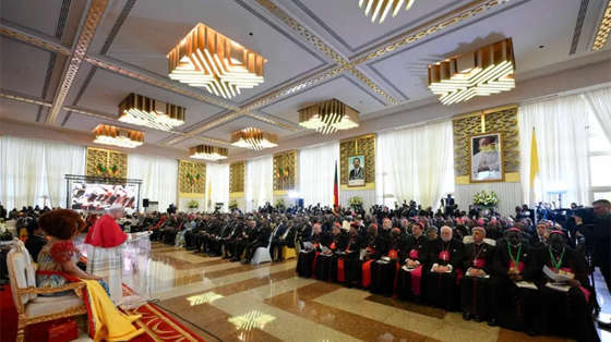 Đức Thánh Cha khẳng định mình đến đây không phải với tư cách một chính trị gia, mà là “như một mục tử và một tôi tớ của sự đối thoại, tình huynh đệ và hòa bình. Chuyến thăm của tôi thể hiện tình cảm của người kế vị Thánh Phêrô dành cho tất cả người dân Camerun, cũng như mong muốn khích lệ mỗi người tiếp tục xây dựng công ích với lòng nhiệt thành và sự kiên trì. Thật vậy, chúng ta đang sống trong một thời đại mà sự buông xuôi đang lan rộng và cảm giác bất lực có xu hướng làm tê liệt sự đổi mới mà các dân tộc đang cảm nhận sâu sắc. Biết bao nhiêu cơn đói khát công lý! Biết bao nhiêu khát khao được tham gia, được có tầm nhìn, được đưa ra những lựa chọn can đảm và có được hòa bình! Mong ước lớn lao của tôi là chạm đến trái tim của tất cả mọi người, đặc biệt là giới trẻ, những người được kêu gọi để định hình — bao gồm cả về mặt chính trị — một thế giới công bằng hơn. Tôi cũng muốn bày tỏ ý chí thắt chặt sợi dây hợp tác giữa Tòa Thánh và Cộng hòa Camerun, dựa trên sự tôn trọng lẫn nhau, trên phẩm giá của mỗi con người và trên tự do tôn giáo”.