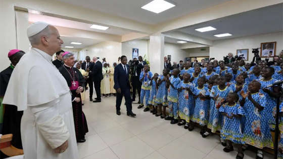 Lúc 17 giờ 45, sau khi gặp gỡ giới chức chính quyền, xã hội và ngoại giao đoàn của Camerun, Đức Giáo hoàng Lêô XIV đã đến thăm cô nhi viện Ngul Zamba tại Yaoundé, một cơ sở bác ái hoạt động hoàn toàn nhờ các khoản đóng góp. Nơi đây đang chăm sóc các trẻ em và thanh thiếu niên từ 18 tháng đến 20 tuổi, trong bối cảnh còn nhiều khó khăn về kinh tế, đặc biệt là nhu cầu lương thực và các nhu yếu phẩm hằng ngày.