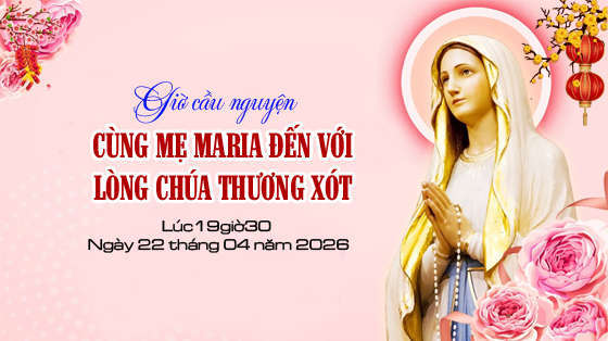 Giờ cầu nguyện “Cùng Mẹ Maria đến với Lòng Thương Xót Chúa” được phát vào ngày 22.04.2026. Để phục vụ cho những bệnh nhân trên giường bệnh, các cụ lớn tuổi, khuyết tật, đau yếu. Kính mời quý anh chị cùng hiệp thông cầu nguyện trên các Website, Face book: