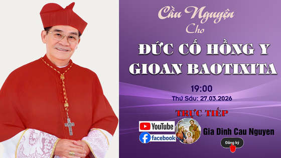 Buổi cầu nguyện “Cầu cho Đức Cố Hồng Y Gioan Baotixita” được hiệp dâng vào tối thứ Sáu lúc 19giờ30′ thứ Sáu ngày 27.03.2026. Tại Giáo xứ Thánh Tống Viết Bường, GB9 Nguyễn Giản Thanh , Cư xá Bắc Hải, phường 15, Quận 10. Được trực tiếp để phục vụ cho những bệnh nhân trên giường bệnh, các cụ lớn tuổi, khuyết tật, đau yếu.