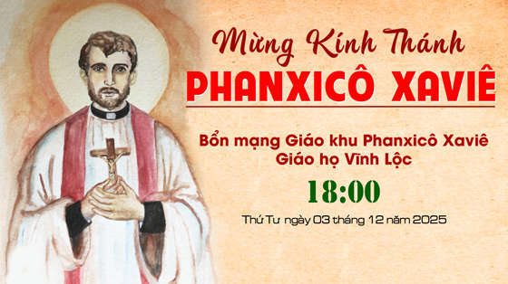 Thánh lễ “BỔN MẠNG GIÁO KHU THÁNH PHANXICO XAVIÊ, GIÁO HỌ VĨNH LỘC”. Lúc 18giờ00 ngày 03.12.2025. tại Giáo họ Vĩnh Lộc. Được trực tiếp để phục vụ: Bệnh nhân, những người đau yếu, tản tật không thể đến nhà thờ được! Kính mời quý anh chị cùng hiệp thông cầu nguyện.