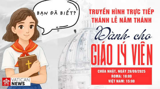 Vatican News Tiếng Việt truyền hình trực tiếp “Thánh Lễ Năm Thánh dành cho Giáo lý viên” do Đức Giáo hoàng Lêô XIV chủ sự tại Quảng trường Thánh Phêrô vào Chúa nhật 28/9/2025 với múi giờ: Roma: 10:00, Việt Nam 15:00.