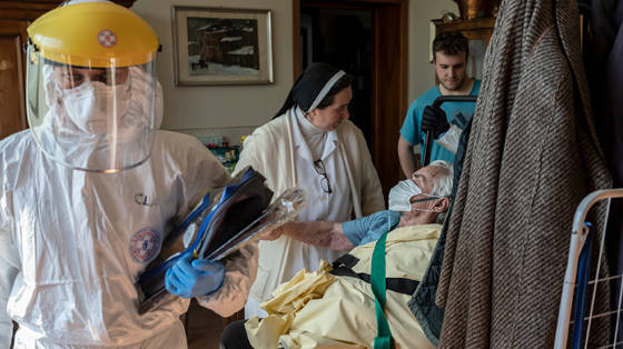 Còn nữ tu Anna Maria Marconi, thuộc dòng Đức Mẹ Hài Nhi, một tình nguyện viên của văn phòng tuyên úy của bệnh viện địa phương, kể với Vatican News rằng: Sơ ở lại bệnh viện để an ủi và xoa dịu các bệnh nhân đang chờ chết. Sơ kể: những bệnh nhân đăm đăm nhìn vào sơ vẻ mặt đau đớn, trong khi cố gắng thở những hơi cuối cùng trước khi lìa thế. Dù họ không thể thốt nên lời nữa, nhưng sơ vẫn hiểu được là họ muốn sơ cầu nguyện cho họ.